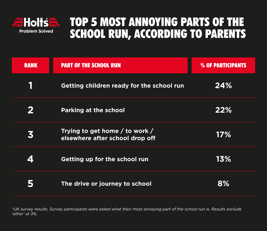 At Holts, we wanted to dig into the habits and pet peeves of the school run, diving into what can help or hinder parents during an already stressful part of the day.