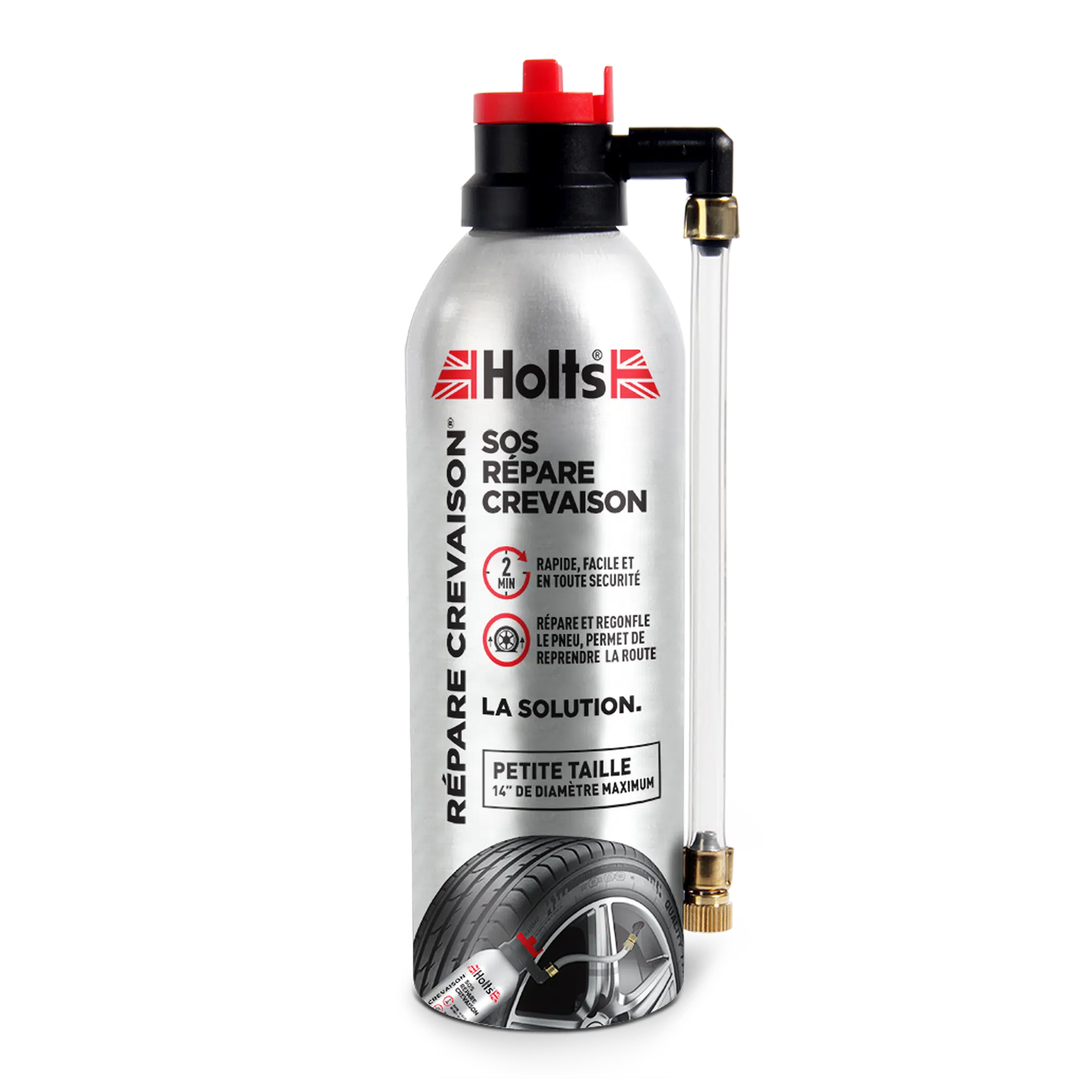 Lorsqu’un pneu est crevé, un professionnel doit vérifier sa sécurité et son intégrité. Les produits tels que le Répare Crevaison Holts ne sont pas conçus pour offrir une réparation à long terme garantissant la sécurité pour toute la durée de vie du pneu.